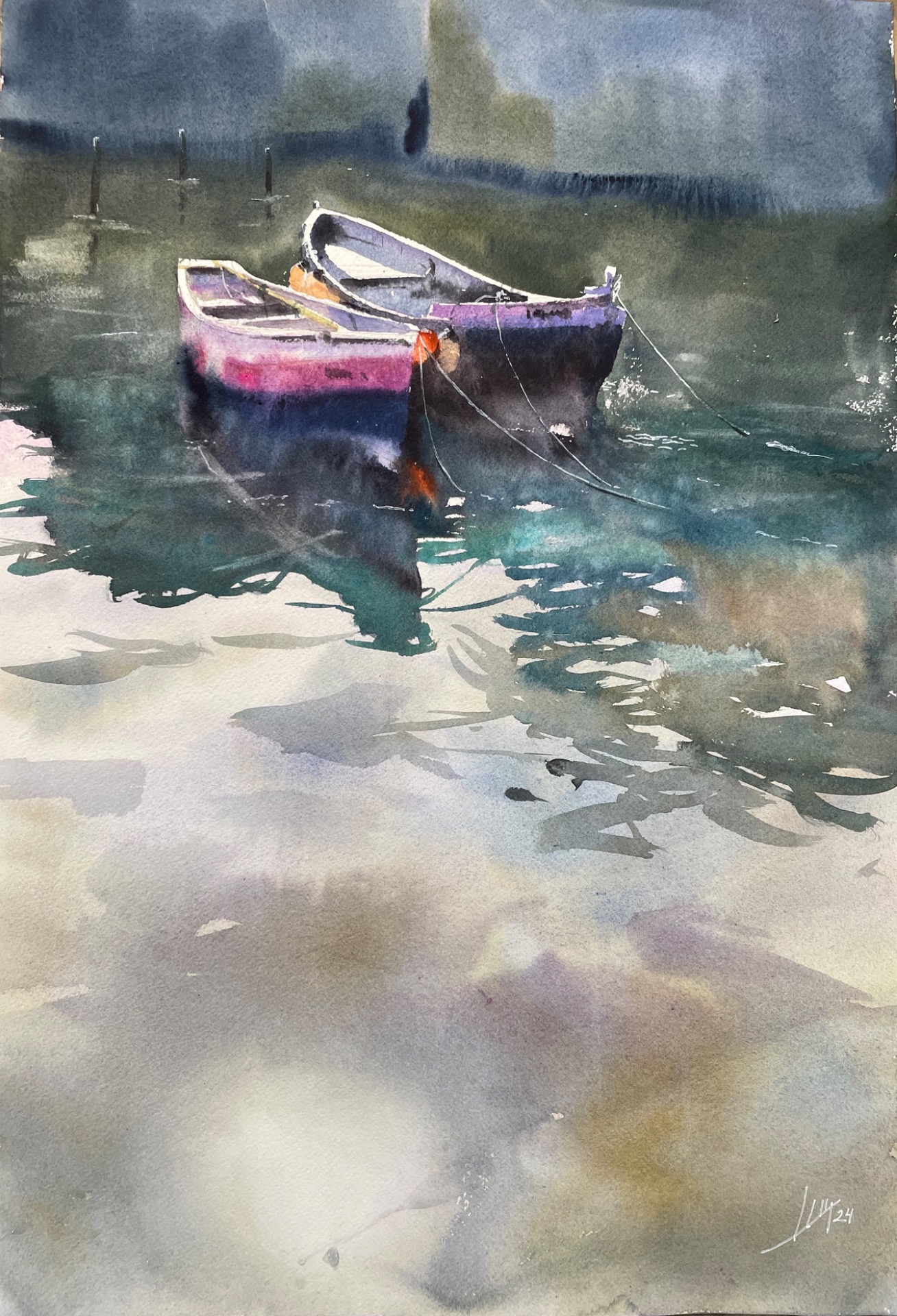 BARCAS 4, 38 x 55,5 cm, WATERCOLOR, ACUARELA